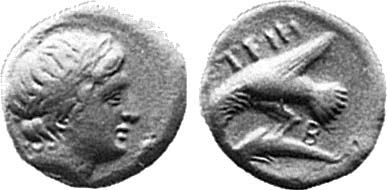 şi pe monede din argint ale aceleiaşi cetăţi , aşezate